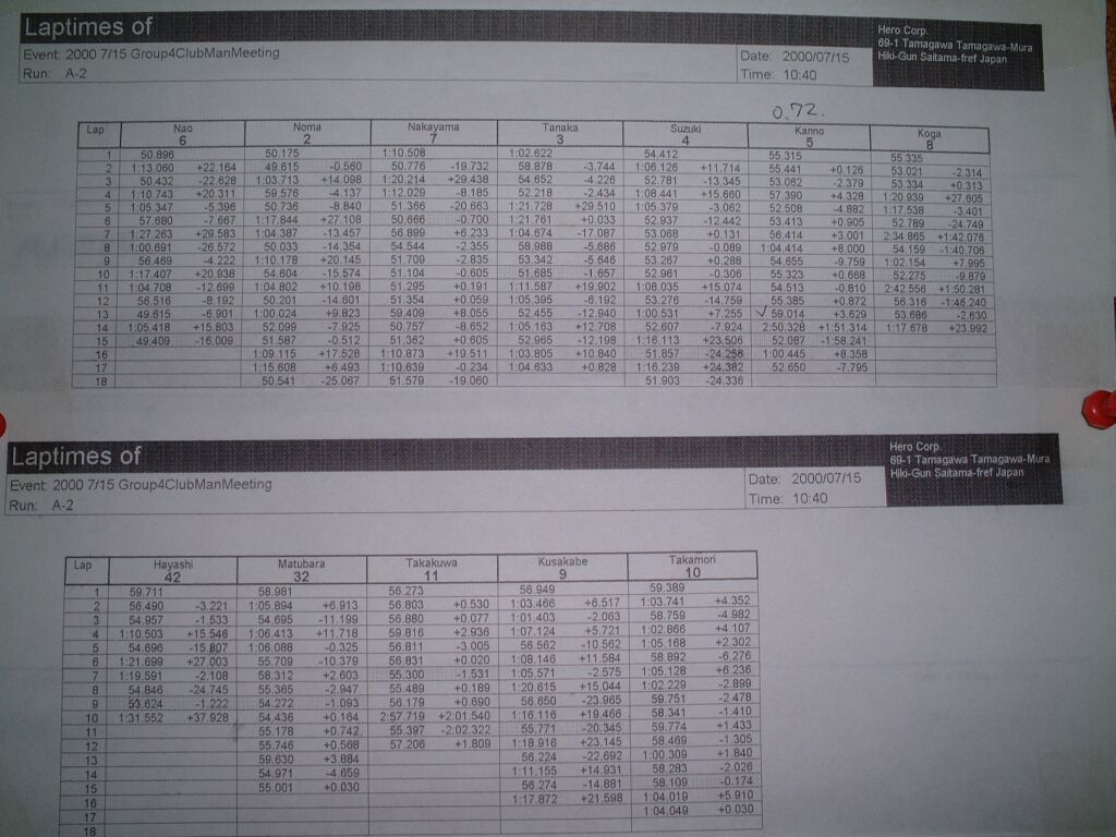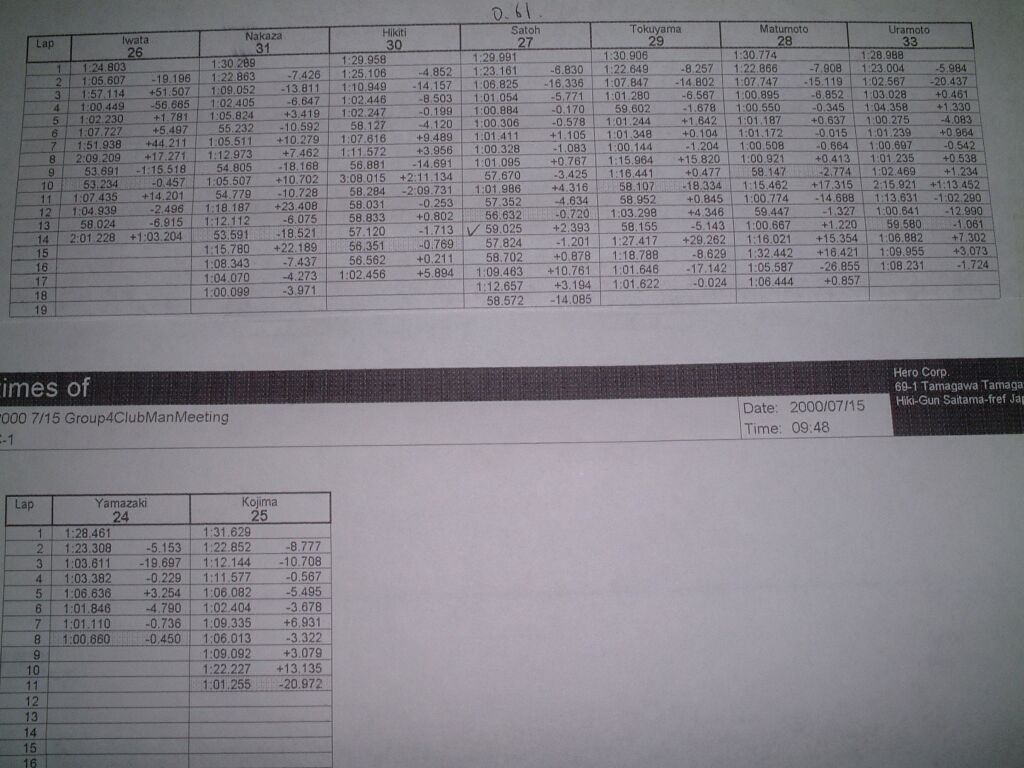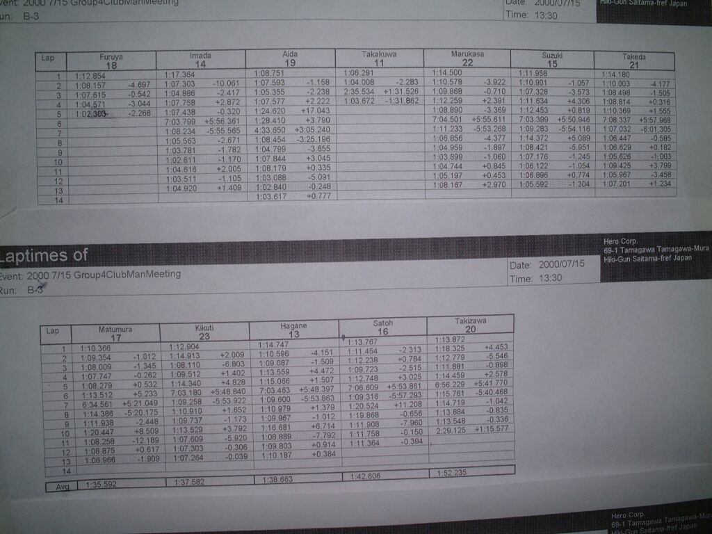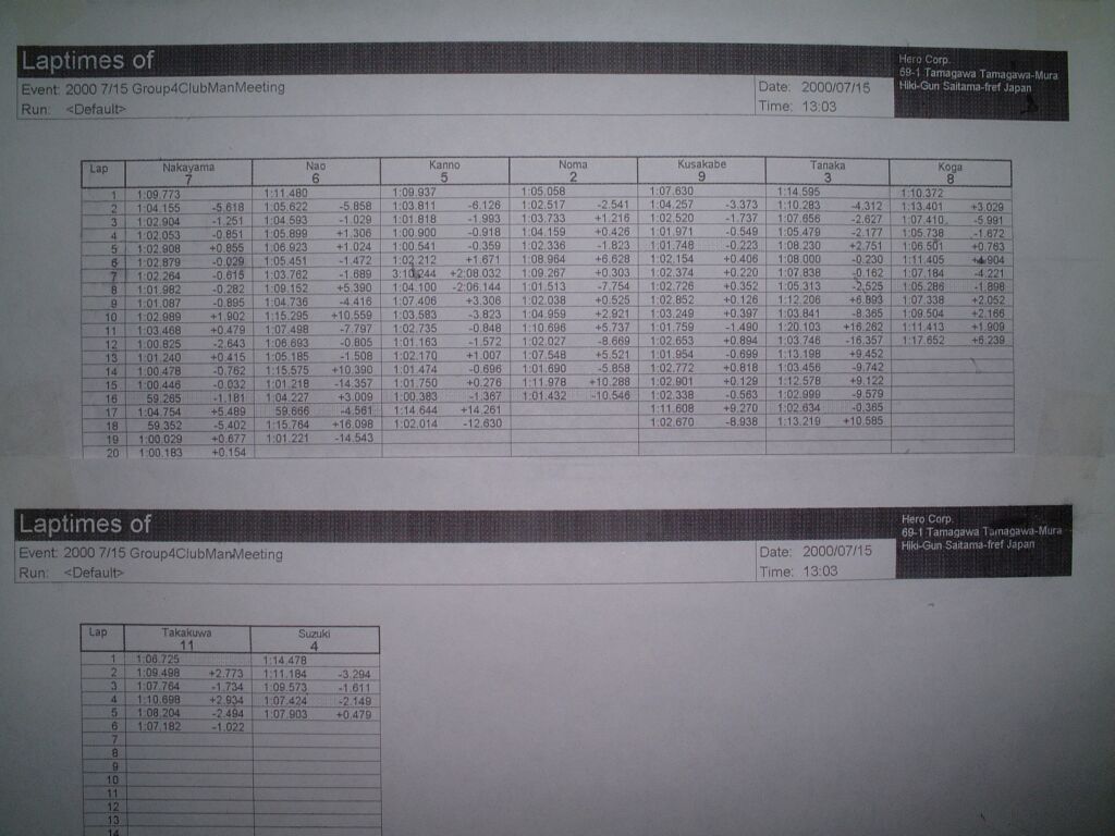 2000年7月15日(土)に、ヒーローしのいサーキットにおいて、Group4 CLUB MAN MEETINGが行われました。