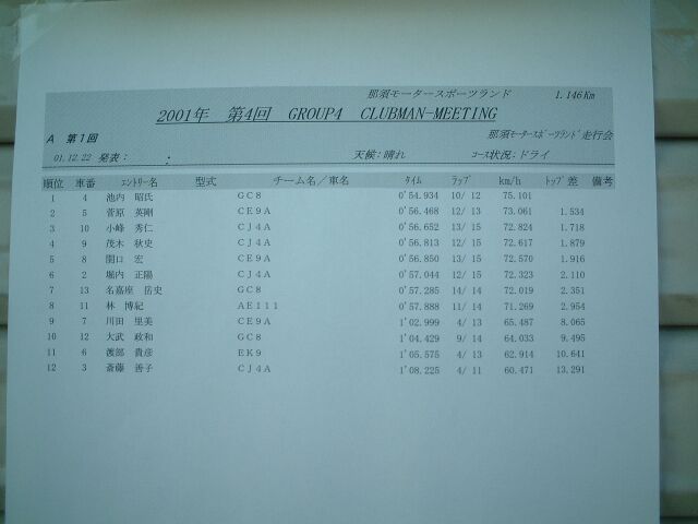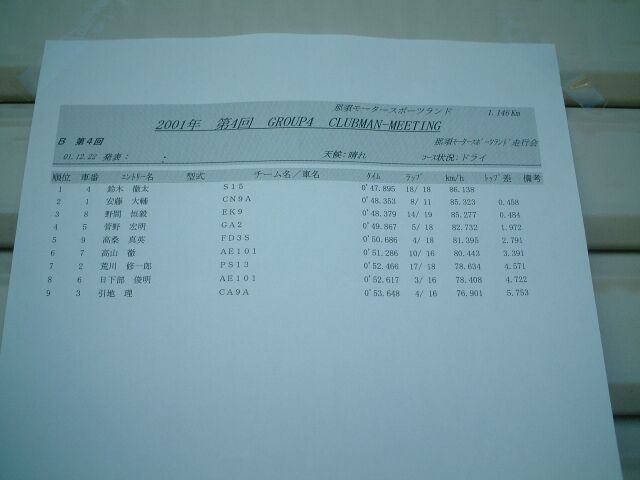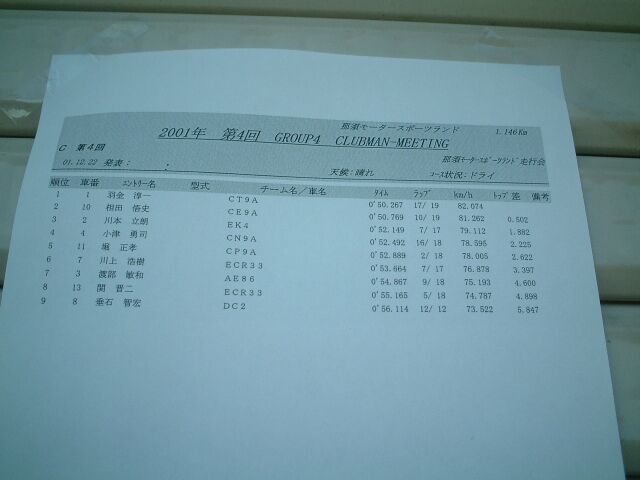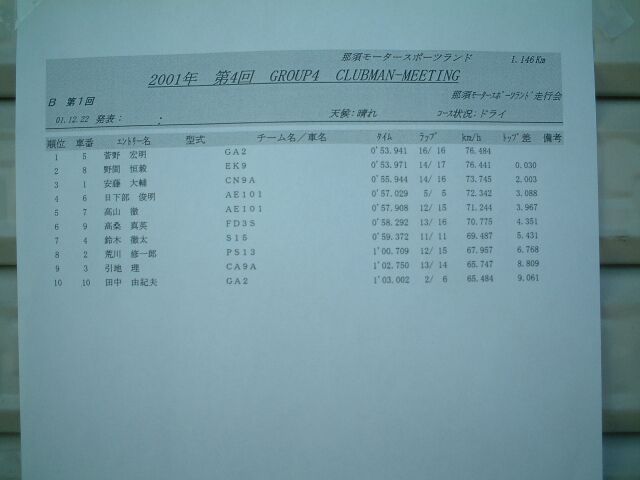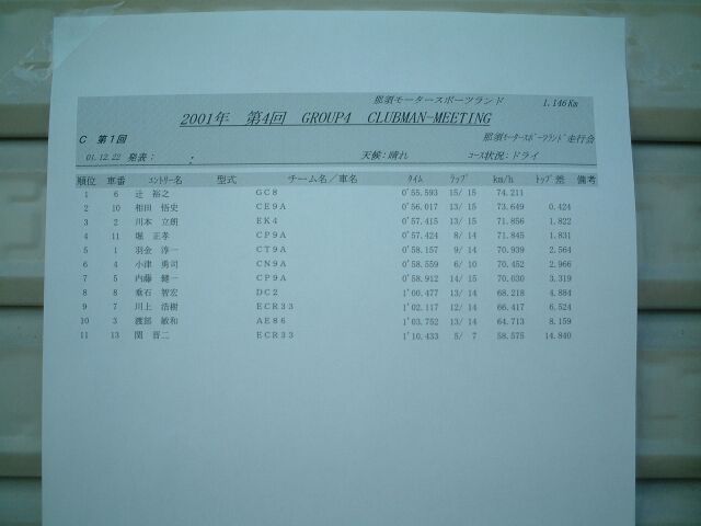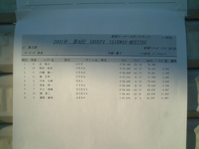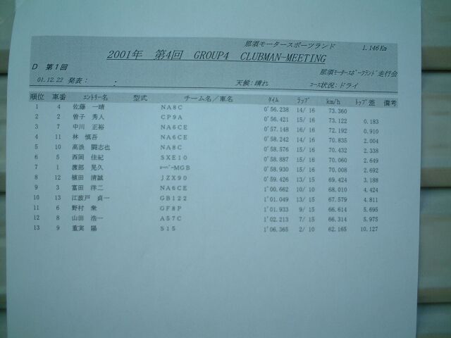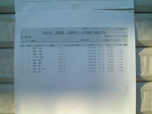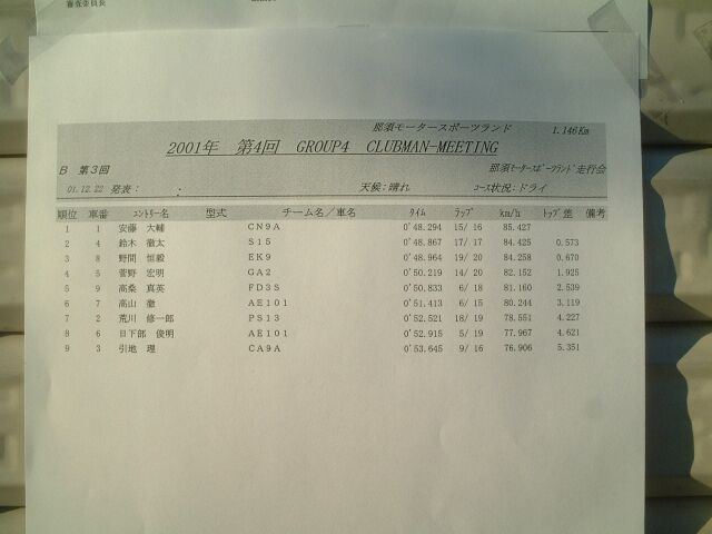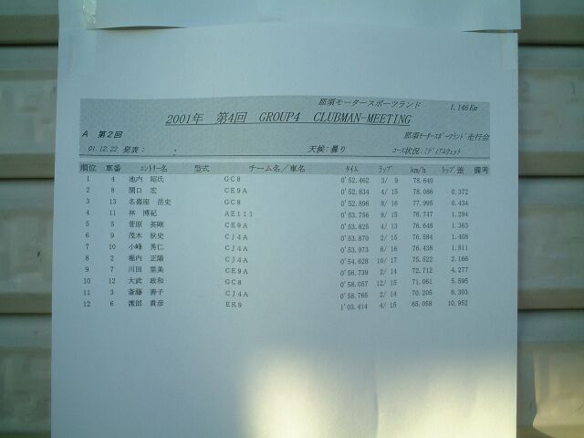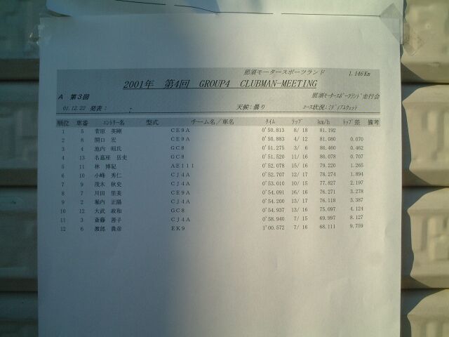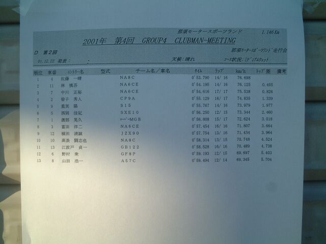 那須スポーツランド走行会 part2 2001/12/22 |