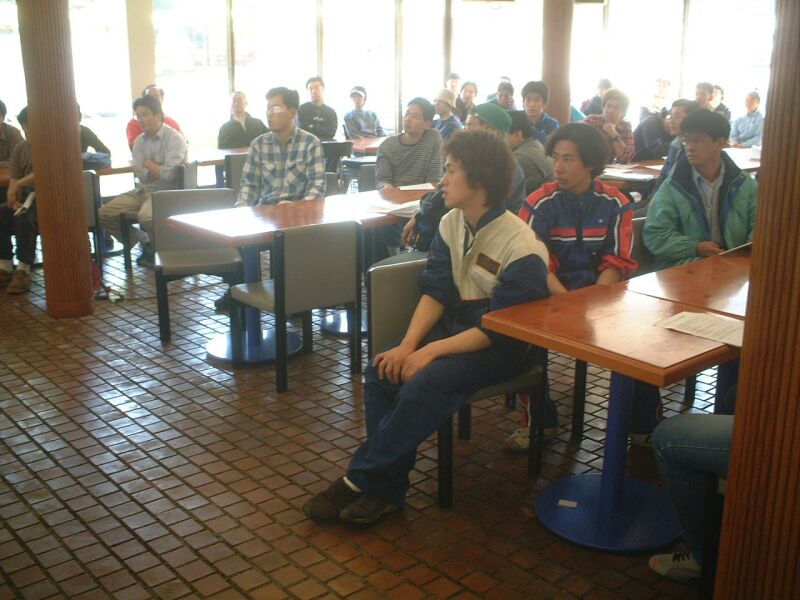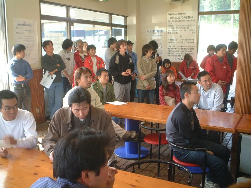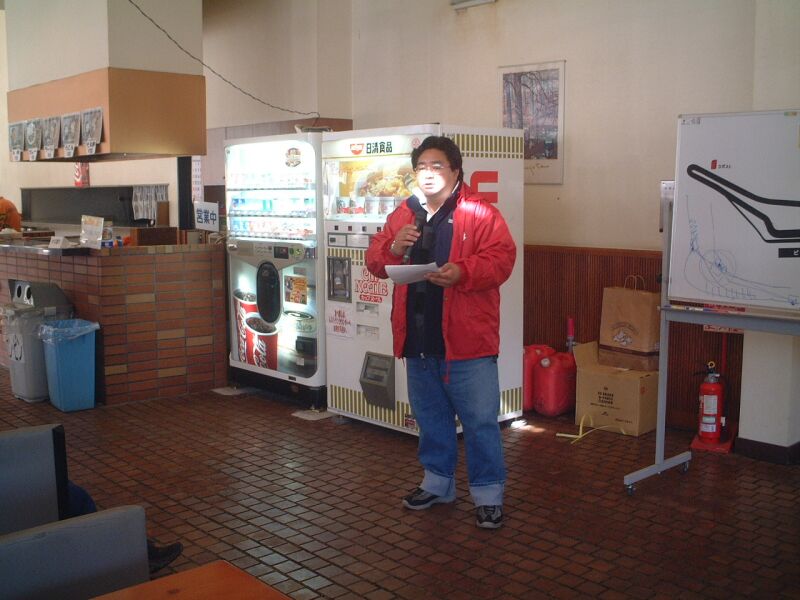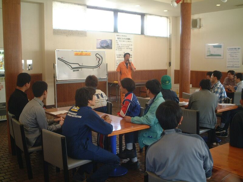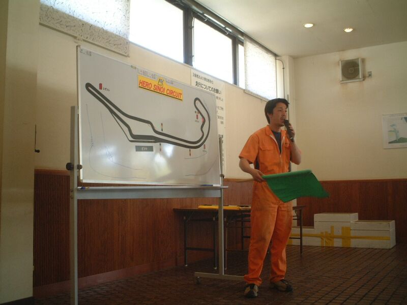 受付、車検を受けたあと、サーキット走行の注意点をヒーローしのいの方からレクチャーを受けます。