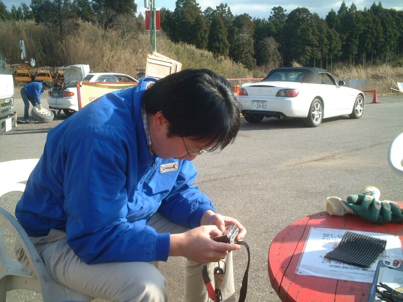 そんな南千葉サーキットになんの前触れもなく現れたのが、野間S2000。本当はシビックで参加するのが普通なのだが本日に限ってはファミリーカー(自称)を持ち出してのサーキットアタック。見ての通り、ノーマル。ホイールだけなぜか前後違いますが、タイヤもノーマルです。