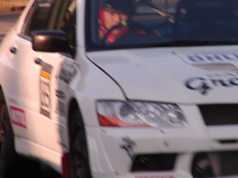 平野車は縁石に乗り上げ横転。しかし午後は元気にまた走っていました。