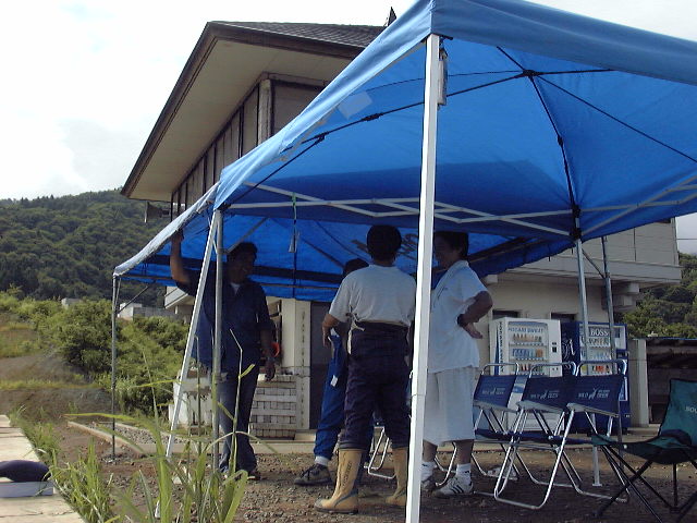 突然の豪雨でもテントを張って対応!
