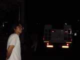 徹夜での移動。みんな眠そう。