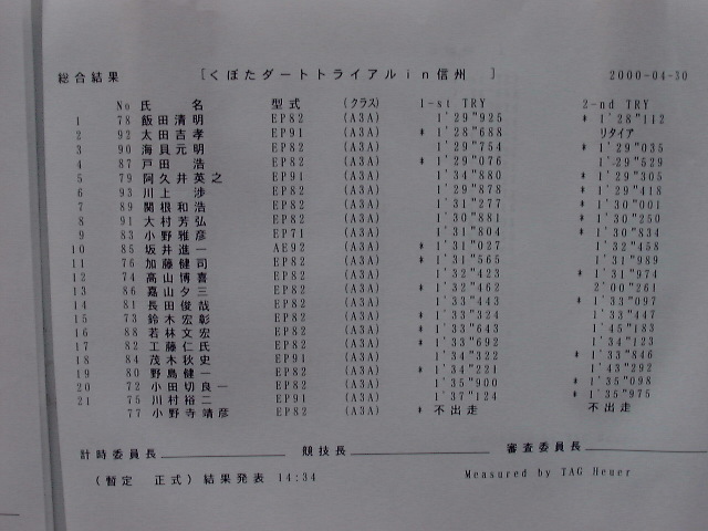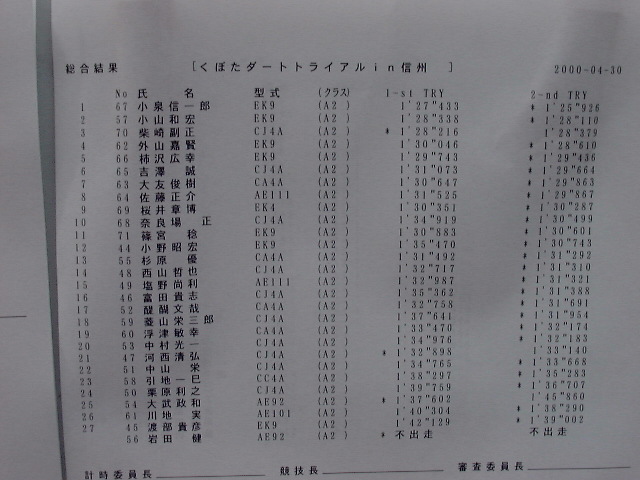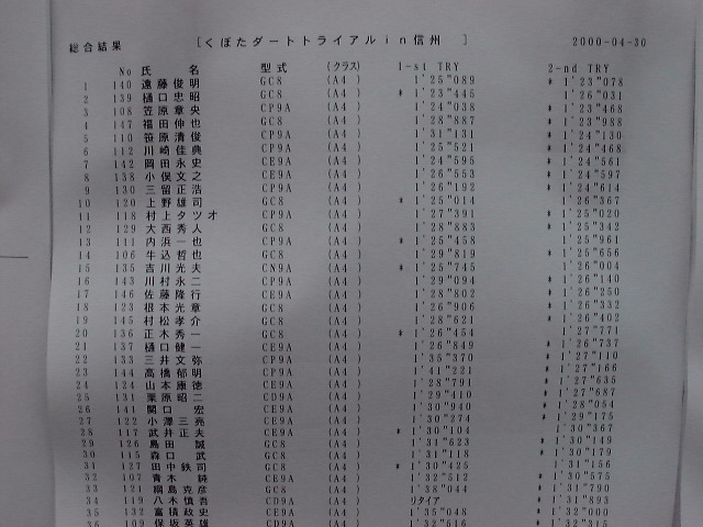 QUAKER STATE CUP Shop Tour2000 第3戦 2000年 4月 30日 |