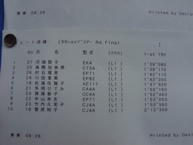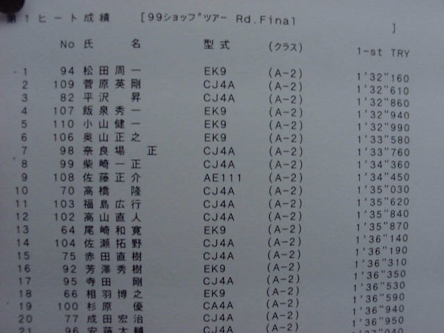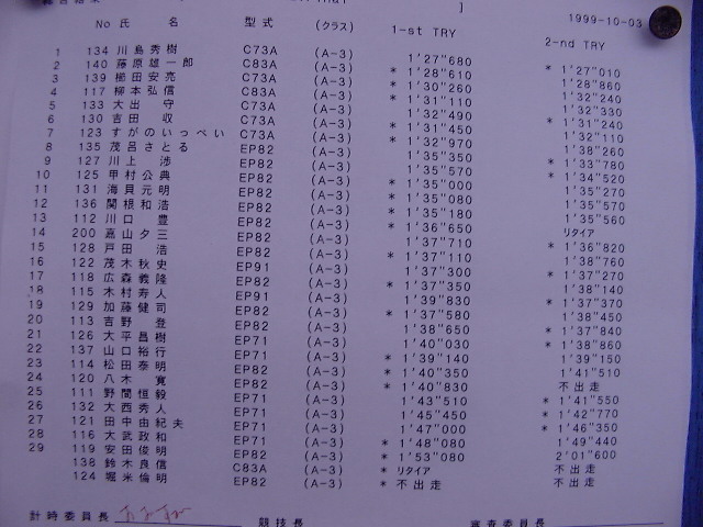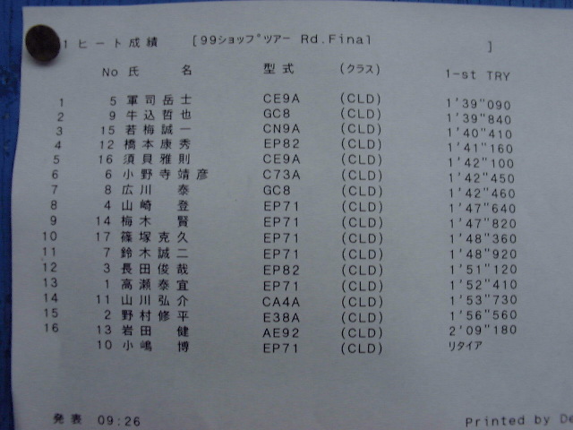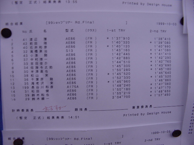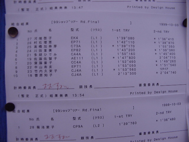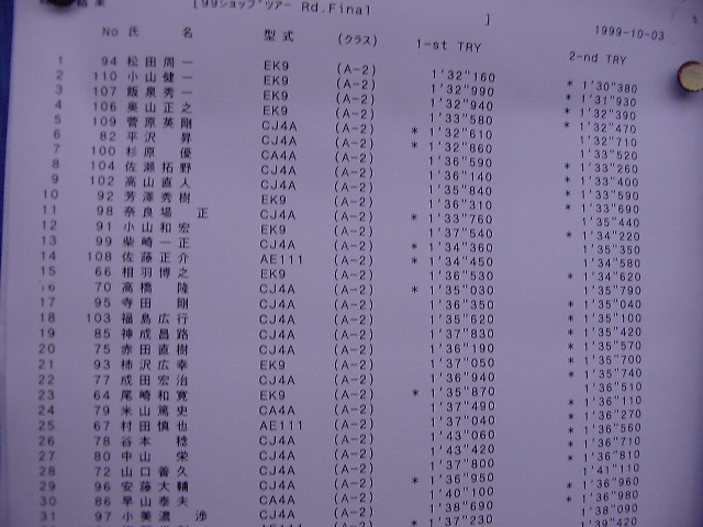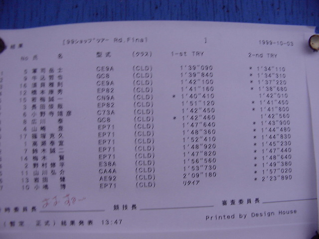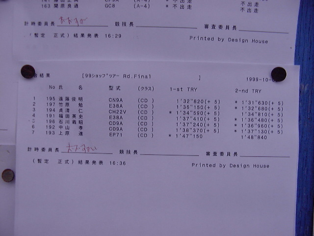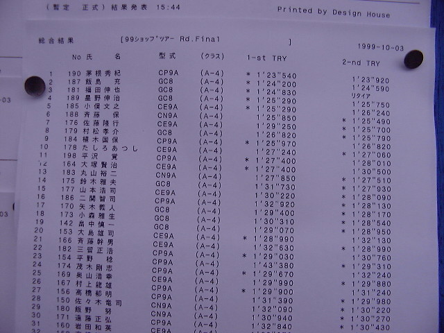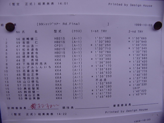 1999年 10月 3日 Mobil CUP ショップツアーRd.Final