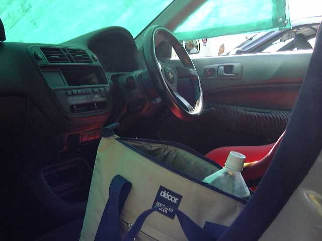 とにかく暑い。暑いのでフロントグラスには日よけ、そしてクーラーバッグには冷たい飲み物を用意して、体力温存をする。こんなに暑いとまるで別の競技をやっているよう。そう、我慢大会・・・
