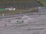 そして私の出走。スタート直後のサイドターン。ちょっと回りすぎてしまうが、立て直し走行。ウェット路面ではあるが、結構行けそうなので果敢に攻める。そして問題の最後8の字ターン。難なくクリアー! トップタイムを2秒更新。しかしまだ後半ゼッケンが7台も残っている。