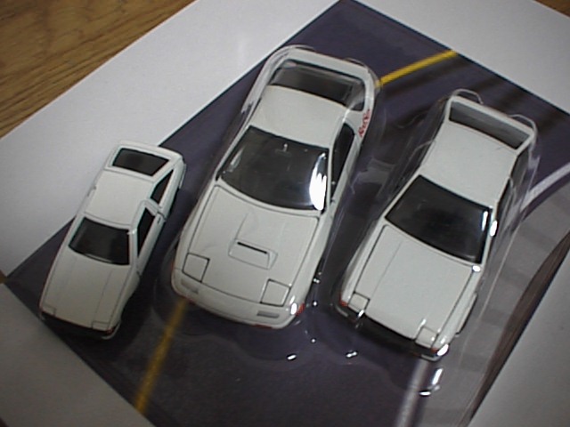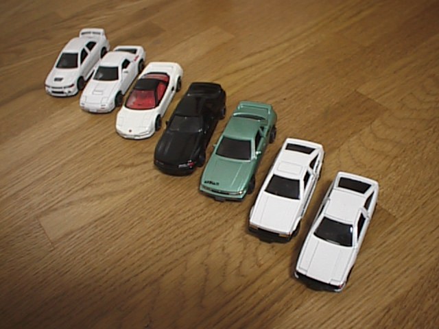 イニシャルDの影響は大きなものだ。プラモデルの他にも、ゲームにもなったし、ミニカーもでている。そのミニカーをようやく手に入れることができた。6台セットのものと、2台セットのもの、2セット。各々 2500円だから、結構いいお値段また使ってしまった。うー、しげの秀一と講談社の思うつぼだ。 ミニカーの方は通常のミニカーモデルをベースに、塗装をかえたものらしい。あとステッカーをシルク印刷してあるのかな、細かくはいっている。こういうシルク印刷って高いのかなあ、安いのかな。ワンオフでやってくれるとこないかな。自分のプラモデルにやってもらいところ。 6台セットのほうはそういうわけだから、縮尺がばらばら。1/55, 1/59, 1/61が混じっているから、1/61のトレノは小さくなって貧相に見える。別の機会に NSX-R(1/59)をかっていたのだけど、こっちのほうは結構細かいところまでできているのに対して、対照的だ。 それにしてもミニカーって、相場が変わらない。一台 380円。自分が小学生だったころも、300円くらいだったと思うから、さほどかわってないね。やはりこういう子供相手のものって、値段あげられないんだろうなあ。モデルはすべて MADE IN CHINA。やっぱ中国だよね、人件費は安い、細かい作業は得意。高度成長期の日本みたいだ。オトナになってこういうものを買うのって、凄く楽だ。なんでも収集できちゃうからリミットがなくって怖い。このままコレクターになりそうな衝動に駆られる。実はイニシャルDの横には、なんとGT(グランツーリスモ)のセットもあり、これもかっちまおうかと思ったくらい。こっちもスペシャルモデルがメインで、塗装も特別なのかな。それにしても SCEが出した GTがイニシャルDと同じ扱いというのも、なかなか感慨深いね。イニシャルDは物語だけど、 GTはストーリーもなにもなく、しかも実在する車がでてくる、ただのドライビングゲームだからね。GTであるという差別化が弱いのだ。86だけでは特別な存在ではないが、「藤原とうふ店」というステッカーがはってあると、秋名のパンダトレノということになり、強烈にアピールできるのとはやはり対照的。その弱さで買わなかったんだろうなあ。でもまたお店いって、やっぱりかっちゃったりして。そうなると家はミニカーだらけだ。やばい、コレクターへの道まっしぐら。 そうだ、おもちゃ屋にいった本当の理由は、サーキットの狼のプラモデルを探しにいったのだった。ロータスヨーロッパ吹雪裕矢仕様が欲しくてねえ。そうしたら、 ARIIから湾岸ミッドナイトのプラモがでていた。しかーしそこはやっぱり有井製作所。パッケージデザインはイニシャルDと違い、マンガからとってない、手書きのもの。モデルの作りはどうかはわからないけど、パッケージの手書きがどうもバチモンくさくって、買おうという気にならなかったな。やっぱり本物らしさというのは、そういう細かいところからくるんだと思うんだけどねえ。