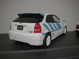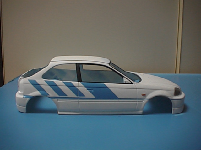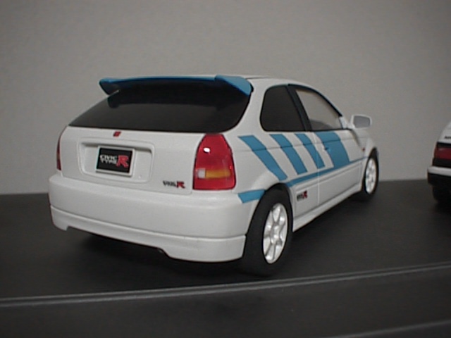 かなりいい感じになってきた。ドアミラー、ワイパーがまだ。 しっかし、うりうりとシビックを作り込んでいて、家でて 24倍の大きさの鉄の塊みると、びっくりするね。そうかあ、どうりで値段も 24倍、、、じゃすまないーーーっ。 1000倍だ。ひぇー。 今週のプラモデル事情 ドアミラー、ウィンドウ、デカール、ワイパーがつき、ほとんど完成へ。 あとはフォグランプとナンバープレート。 いやあ、やっぱデカールがいい雰囲気だね。 番外編:グループ4カラーシビック グループ4カラーのシビック塗装。マスキングテープをデザインカッターでカットしてマスキング。本当はこの青いラインの他にシルバーのラインがあるのだが、さすがにそこまでは普通のスプレーじゃ厳しい。 |