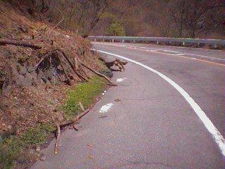 コーナー出口にはこんな倒木があったりして、、インかすめるのは非常に危険。