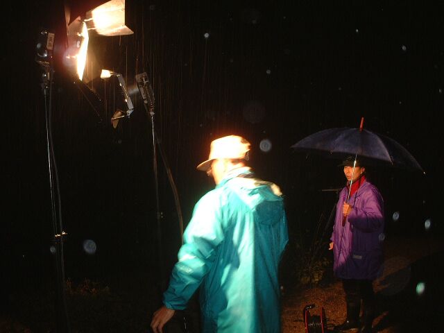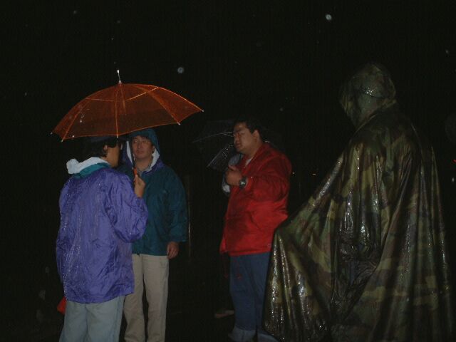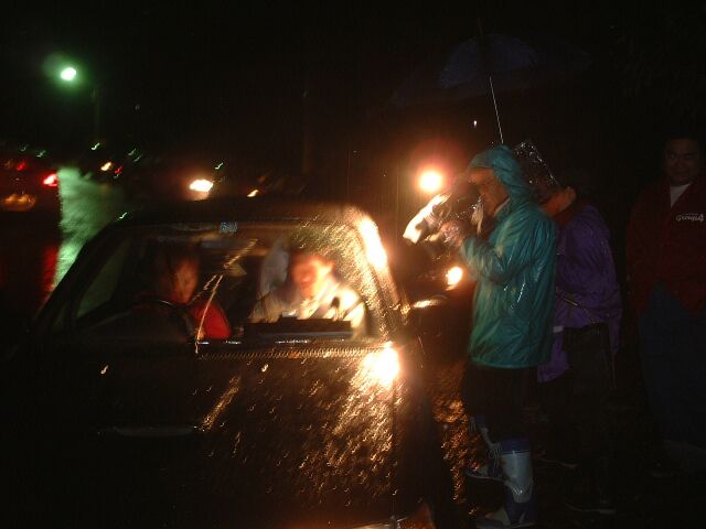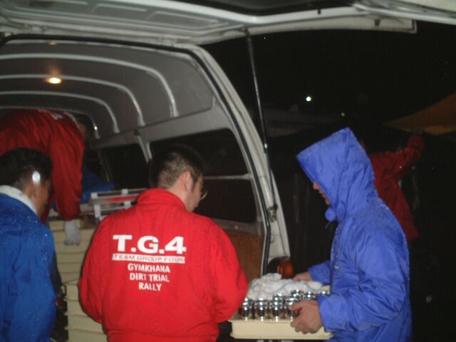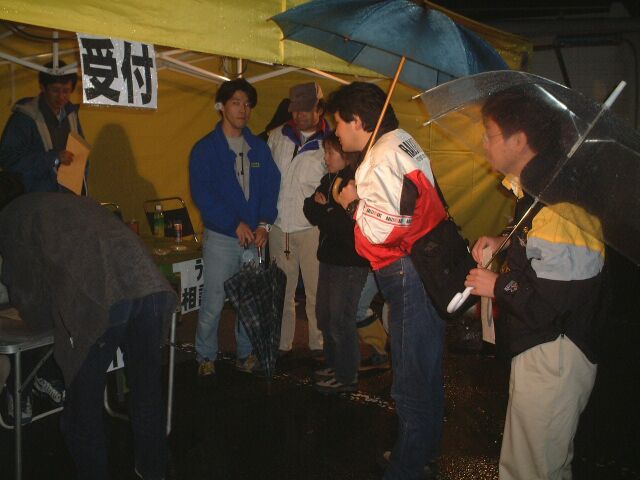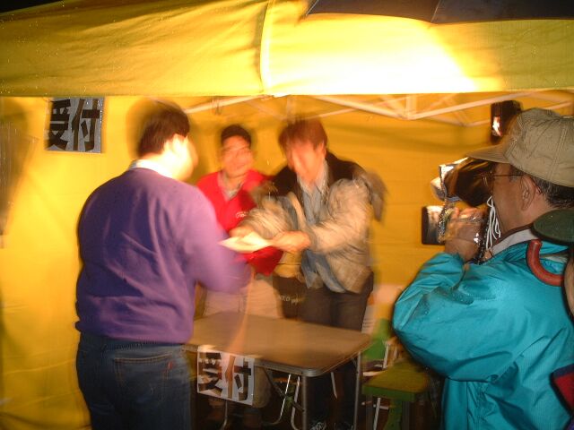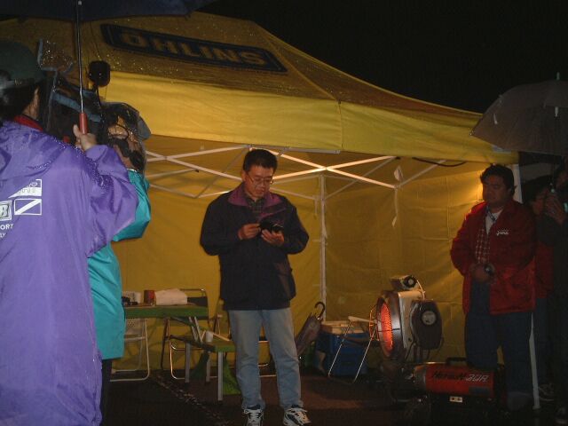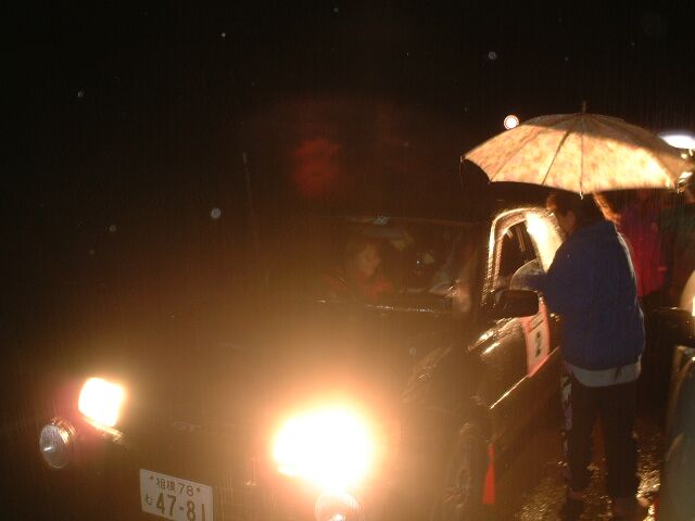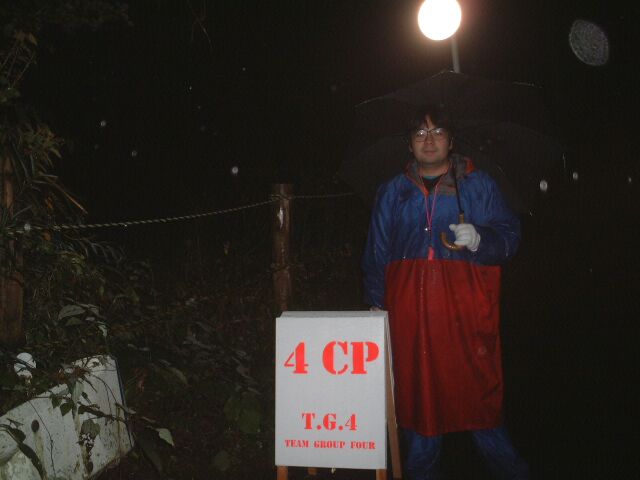 こちらはCP4です。長島さんが撮影用の照明のセットをしています。オフィシャルもエントラントが着くのを雨の中待っています。