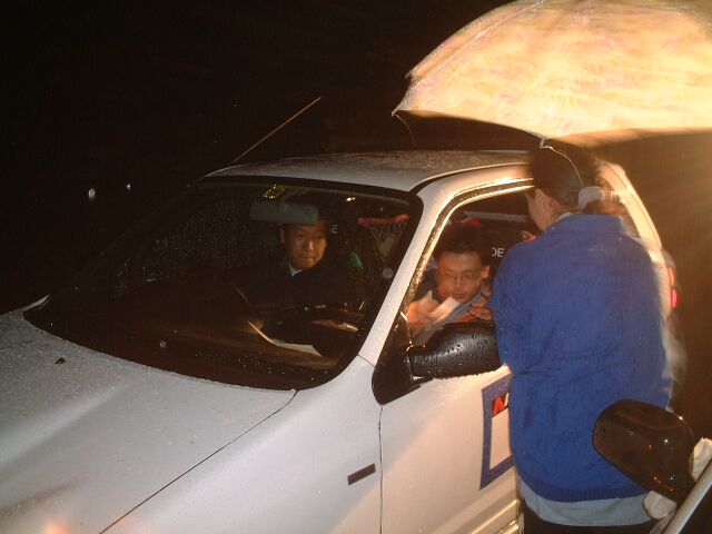 CP2でのチェック風景です。次から次へとラリー車が入ってきました。