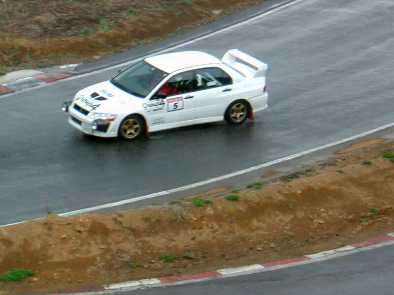 昼過ぎにラリーキッズに到着しましたが、すでに十数台の車が練習をしており、我々も早速準備をして練習を開始しました。この日の天候は、夏日のようにとても暑く、数周走るだけで油温計もたちまち上がり、ドライバーもたちまち汗びっしょりです。