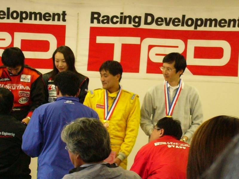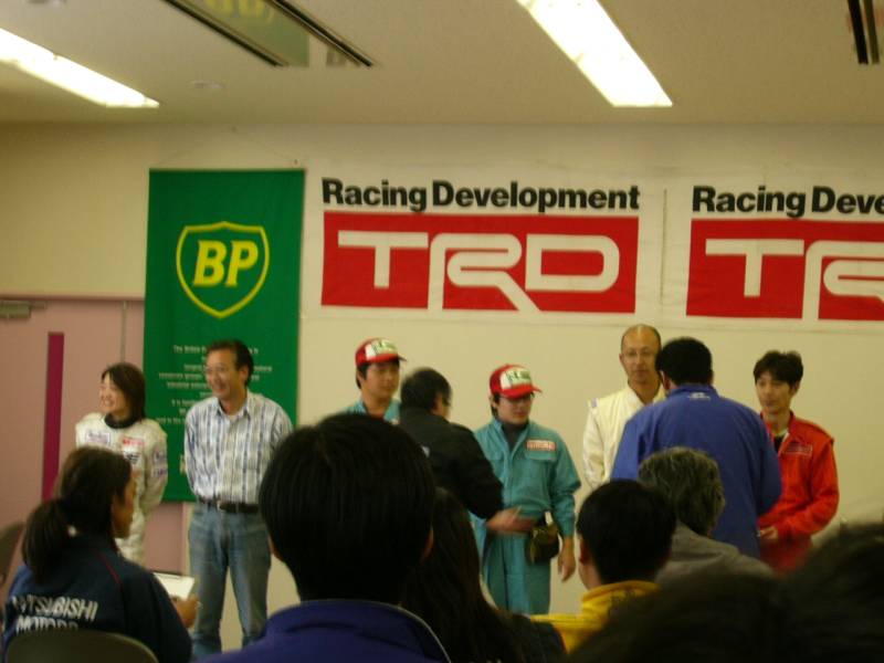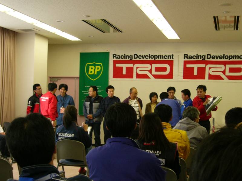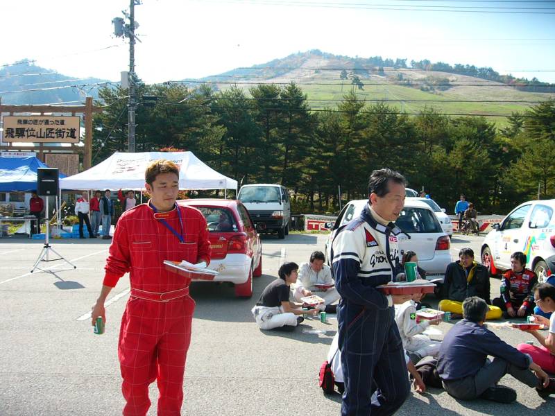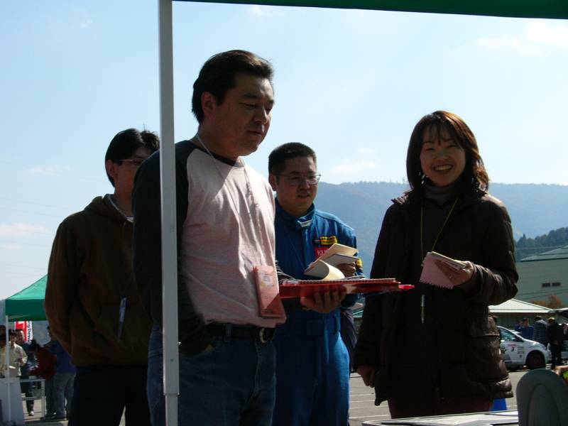・・・当の私の成績は・・・・・、はっきり言ってやばいです。今回年間チャンピオンを決めたチームオクヤマの藤原選手と1分10秒の差があります。途中、西岡選手には昨年よりもコントロールできるようになったとお褒めの言葉を頂き、いい気分になっていたのですが、蓋を開けてみれば大差がついていました。これは「大ショック!」。やっぱり「重さ」なのかな〜。と、懲りずに今回も意気消沈・・・。西岡さん、折角遠い所まで来て頂いてコドライバーをお願い致しましたが、こんな成績で申し訳ありません!
