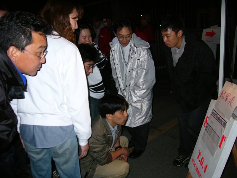 レザルトが発表されました!みんな真剣な表情で覗き込みます。ちょっと印刷が小さすぎたようですね。