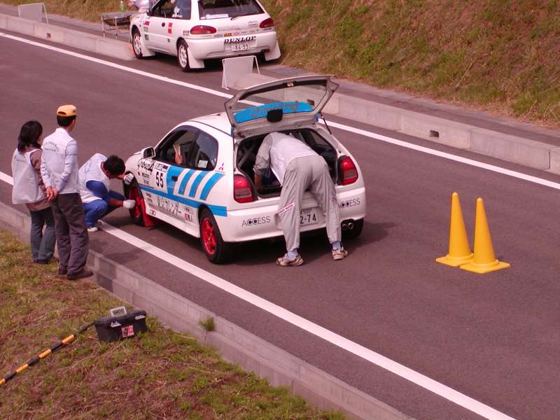 全日本ラリー選手権MSCCに参戦です。ドライバー・コドライバーは大平・福村組。サービスにも気合が入ります。