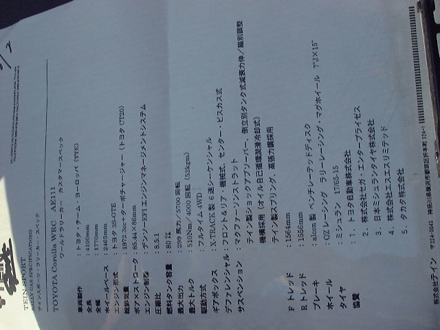 TEINの鳥丸さん(写真左)と川口さん(写真右)。そして諸元表です。