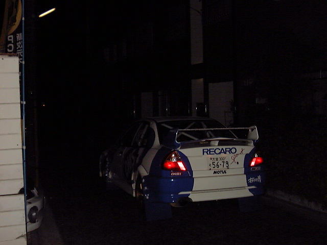 DMS RECAROランサーの試乗、夜の闇へと消え行くランサー。