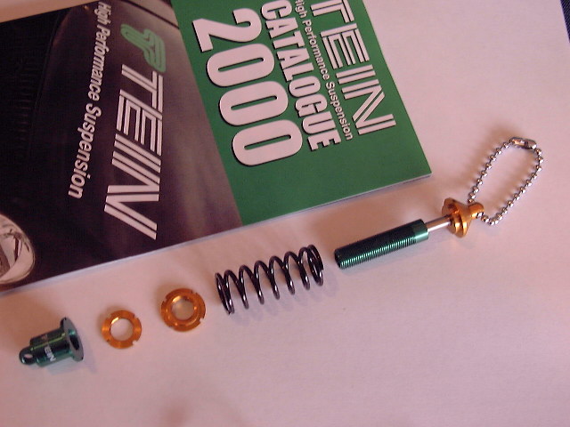 なんと、TEINの精巧なキーホルダーは TEINの工作技術の粋を集めて工場で内製された逸品です。ホンモノとほぼ同じ構造、車高調整、プリロードもかけられ、当然ダンピングもします。コイルスプリングも規格ものです。