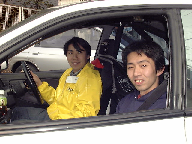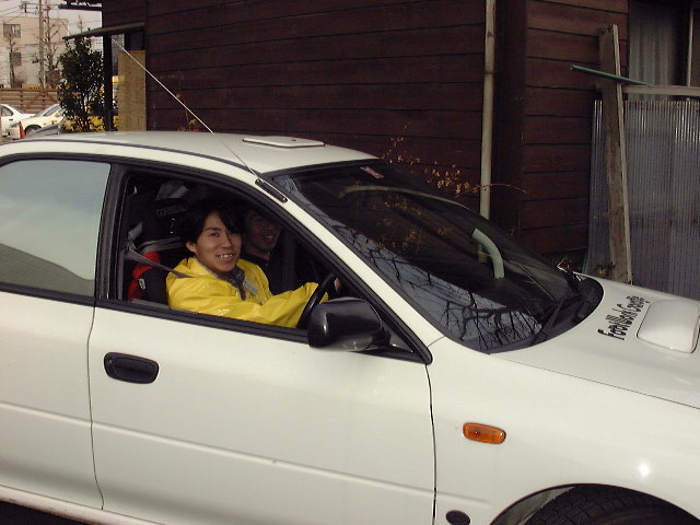 | 右:ジムニーで八王子からお越しの志村さん | 右側がお友達の山本さん。GC8で日野からお越しです。OHLINSのご試乗はいかがでしたか? | 右は調布からGC8でお越しの浅田さん。中央はやはりGC8で横浜からお越しの佐藤さん。CUSCO IMPREZAに興味深々です。 |