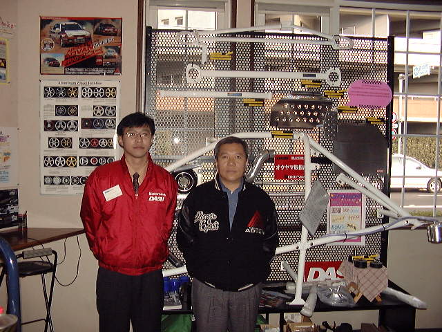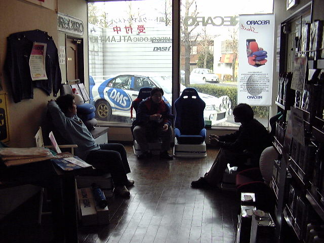 | 栃木・野木からお越しの醍醐さん夫妻。AW11です。 | じょしこーせーポーズ! | しげしげとチタンエキマニを眺める宮本さん | RECAROのすわり心地はいかがでしょう |