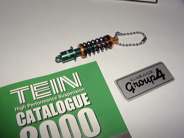 TEINダンパーをお買い上げの方にグループ4から嬉しいプレゼント。本物そっくりのショックアブソーバー型キーホルダーです。通年でプレゼントします。