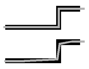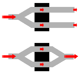 【図3: 上: 2本分岐・2本出し 下: 2本分岐・1本出し「プラットフォーム構造」】 |