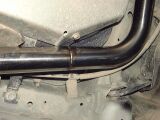 マフラーがストレートに近ければ近いほど排気抵抗が低くなるのは周知のことです。グループ4では最低地上高などの関連からノーマルマフラーと同じ位置を通る構造としました。しかし、ノーマルマフラーのようにすべて90度の角度で曲げることはしていません。1度でいいからなるべくストレートに近く、そしてなだらかなカーブになるようにぎりぎりの調整をしています。この地道な努力は熟練した職人でなければ出来ないといってもいいでしょう。 サイレンサーの中心軸と、マフラー出口の中心軸が微妙に異なる、燃料タンクの迂回路の部分が、サスペンションを迂回する部分を最小限にとどめるなど、見れば見るほどこだわりを感じることができます。 |