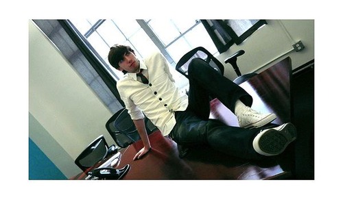 やたらおしゃれさんですネ!社長がこんなポーズ取っちゃう会社って素敵だなあ。私も務めたいです。そうだな、肩もみならわりと上手ですよ!あ、英語に「肩が凝る」て表現ないんだっけ……