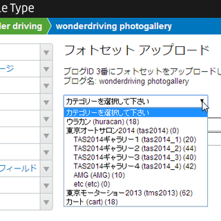 実際のワンダードライビングでの運用では写真ギャラリー用のブログを別に予め立ち上げておき、そちらを写真エントリー専用として本体ブログと分けています。これは数百枚の画像のエントリーが一気に増えて管理が煩雑になるのを嫌ってですが、別に本体ブログにアップロードしても構いません(※ ただこの場合は画像も新着として扱われるため、カテゴリをみて新着記事からはずすなどの工夫をしないと新着記事が画像ページだらけになってしまいます)。