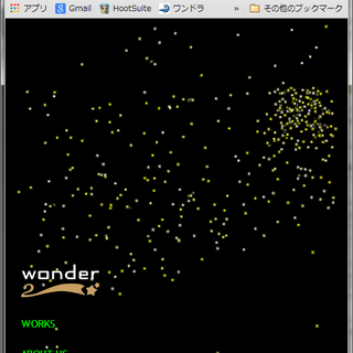 これまで情報が雑然としていたので業務実績と連絡先のみを残し、wonder2のテーマである宇宙と流れる星をHTML5(Javascript)で実装しています。