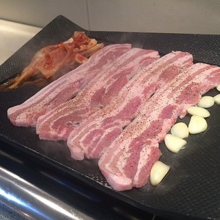 店の名前は変わったものの、同じ韓国料理ということで中にはいって「サンギョプサル」というものを頂きました。