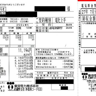 8月分(7/24~8/24) 350kWh 11,194円(前年 310kWh, 前年比 12%アップ、前年も夏の間エアコン付けっぱなし)