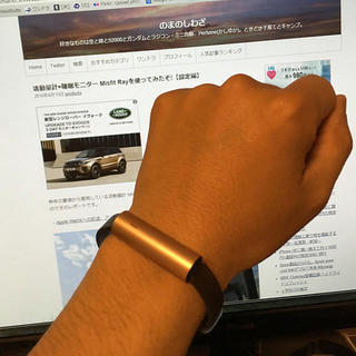 PCのキーボードを叩くときにたまに邪魔になるのは RAYの方でした。ベルトが細くて多少手首に近く装着できるのですが、それがパームレストと干渉するのが原因のよう。多少ルーズにつけるのがいいかもしれません。今回使ったのがスポーツ向けの防水ベルトですが、革ベルトも用意されるようなので、そちらだとまた装着感が変わってくるでしょう。