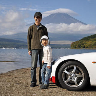 2008年、富士スピードウェイのF1グランプリへ行く途中の山中湖畔。 2016年、NISMO FESTIVAL 2016で行く途中。 子供は5歳から13歳へ、背は同じとなりました。子供の成長は早いです。