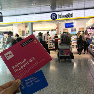 JALでヴァンター国際空港、ターミナル2に到着して電車に向かって歩くと左側に R kioski(キオスク)があります。レジでSIMを買い求めることができます。