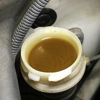 まるで味噌汁のように濁ったクラッチフルード、これはクラッチ板とかいう前に要交換です。