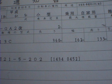 今回の場合は「前軸荷重」「後軸荷重」「総重量」のみ変更になり、そこのみ