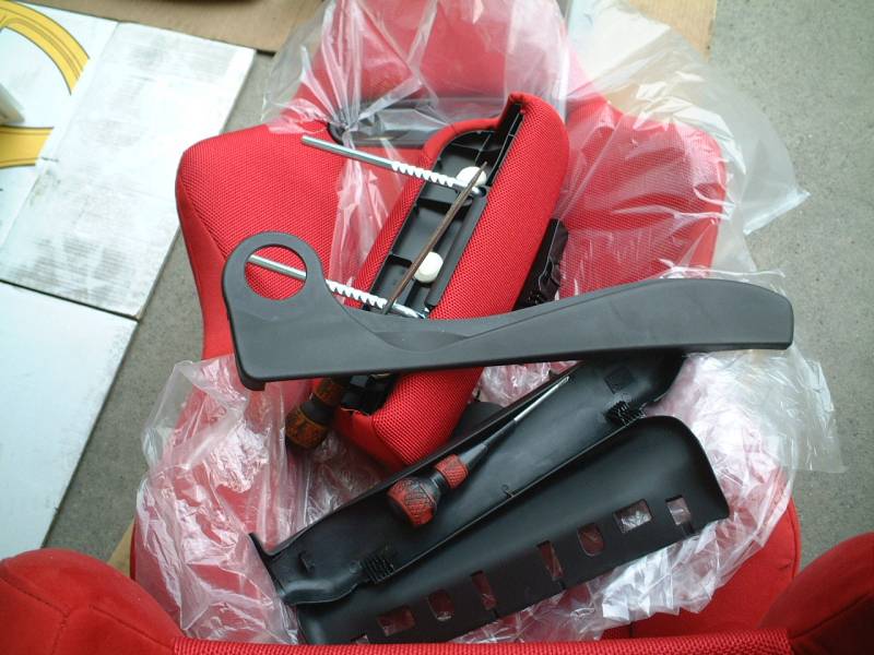 シートベルトアンカーですが、回転を制限するでっぱりは切断するか、ペンチでまげてしまうとワッシャをかませる必要がなくなって、干渉を少なくできるでしょう。またシートベルトアンカーの位置が低すぎる(サイドサポートの間に埋まっている)ため、シートベルトの脱着は非常にやりにくくなりました。できればもう1〜2cmくらい上に穴位置がずらせられればいいのですが。プレート使うなどして延長したくなりました。