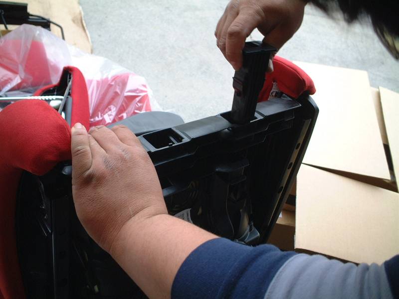 さあ、これで助手席を固定しようと収めてみました。しかしシートのスライド量がたりなく、固定することが出来ません。 |
