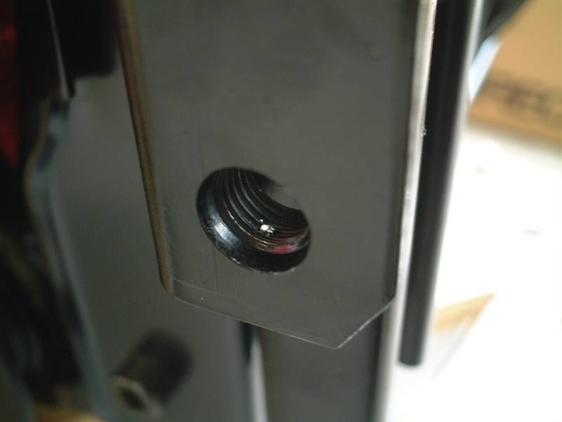 なんとここでトラブル発生。ボルトが入りません。 理由は簡単、ネジ山に溶接がとんでいて、詰まっているのです。 |