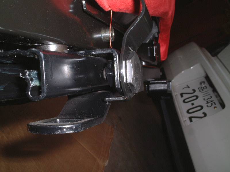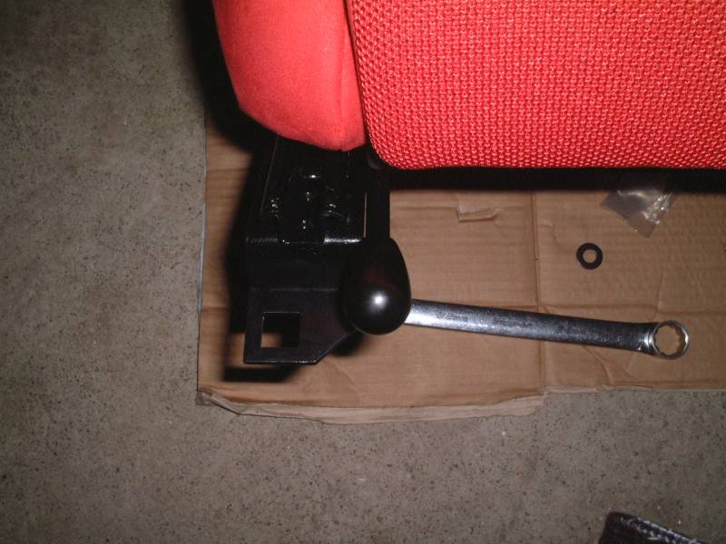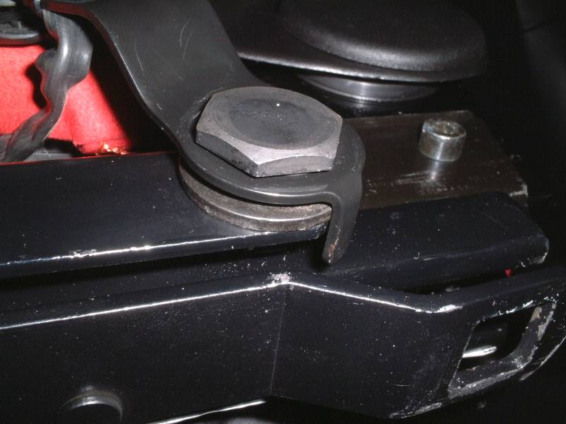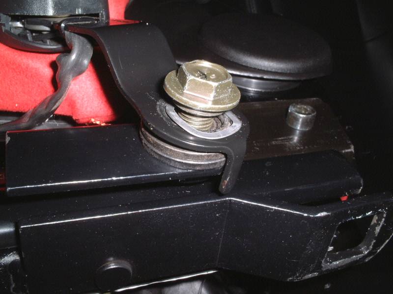 ワッシャーを2枚かませて、でっぱりがシートレールに干渉しないようにしました。 |