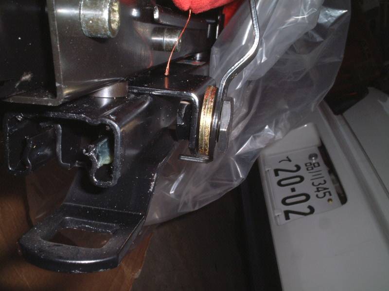 内側もこのようにめり込んでいます。 つまり、シートレール自体には問題がなく、レカロシートのサイドサポートが張り出しているということでした。 |
