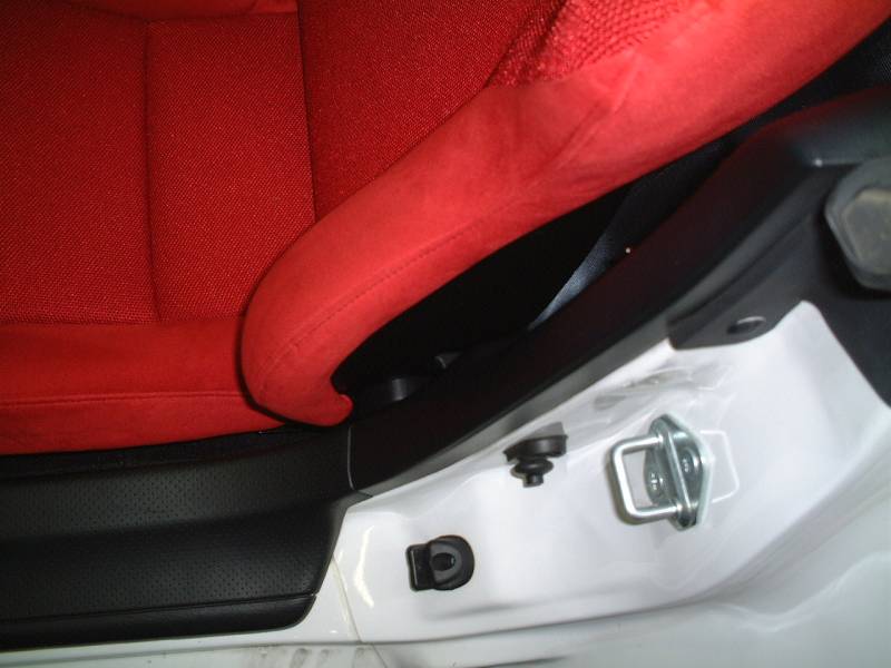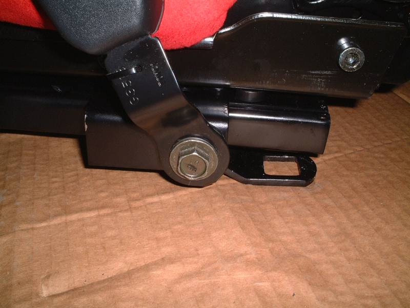 理由は簡単、純正のシートベルトアンカーの移動を規制するためのでっぱりがシートレールに干渉しているからでした。 (写真に写っているのがでっぱりの少ない、固定ボルト) |