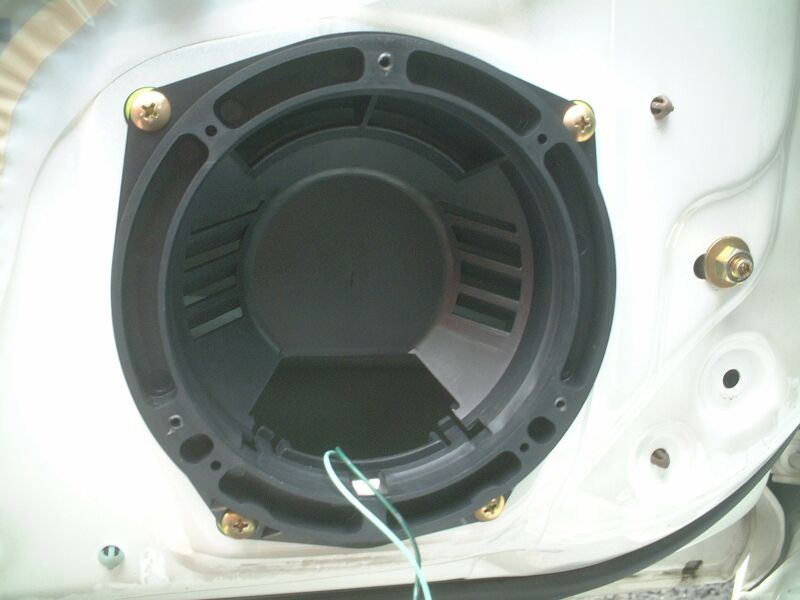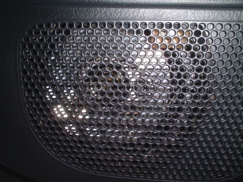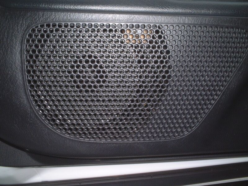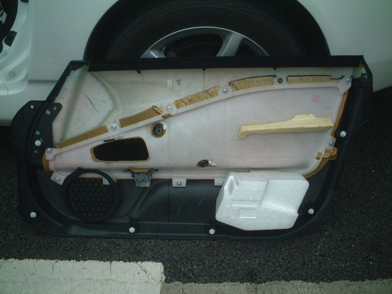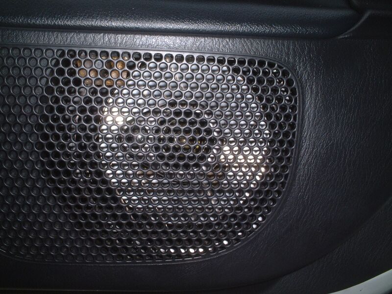 これが純正スピーカーが装着されているところ(右側ドア)。真っ黒なのでなにがなんだか。 |