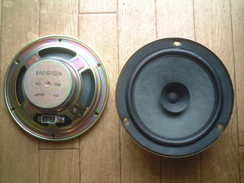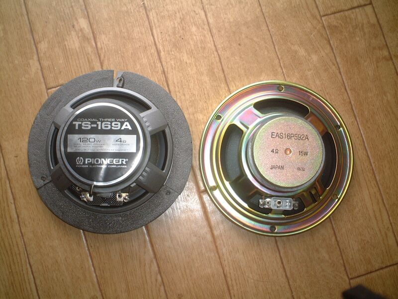 スピーカーは以前使っていたもの。16cmのpioneer。ソニーのを買いに行って、ソニーの販売拡大員に渡された思い出深いスピーカー・・・(^^;