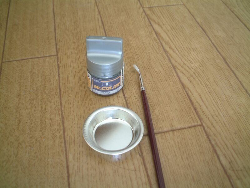 こちらは以前から使っていた塗料と筆、塗料皿。 |