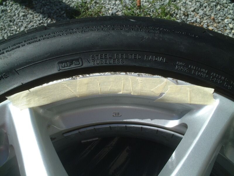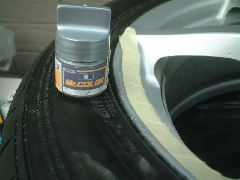 今回、リムにガリ傷があるホイールを補修することに。ガリ傷の難しいところは色を塗っただけではやはり目立つため。 |