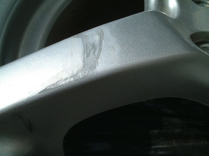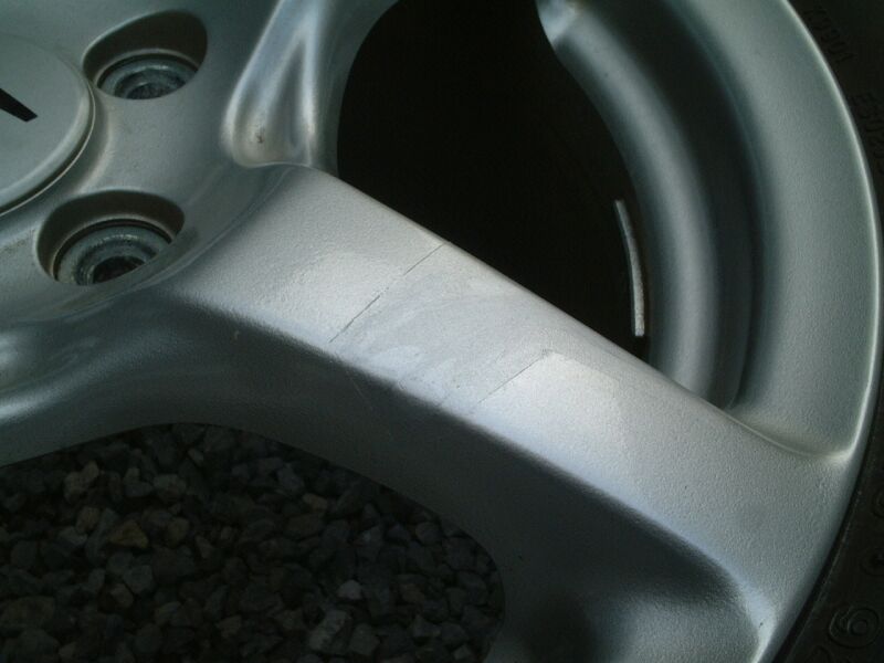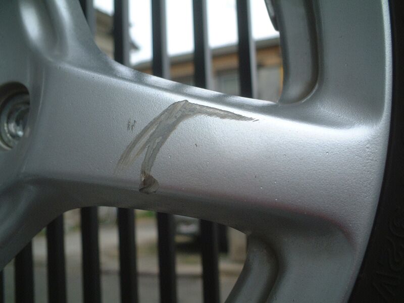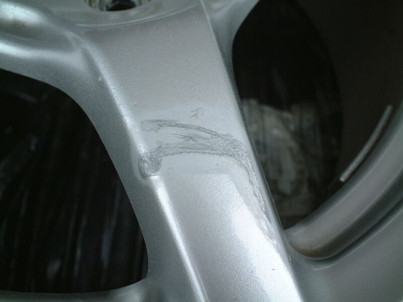 このようにスポーク部に傷が付いていて、目立つ状態だった。 |