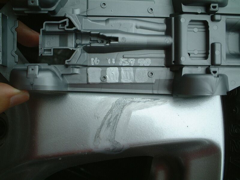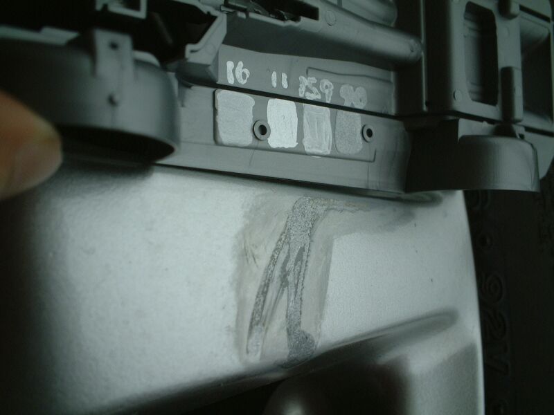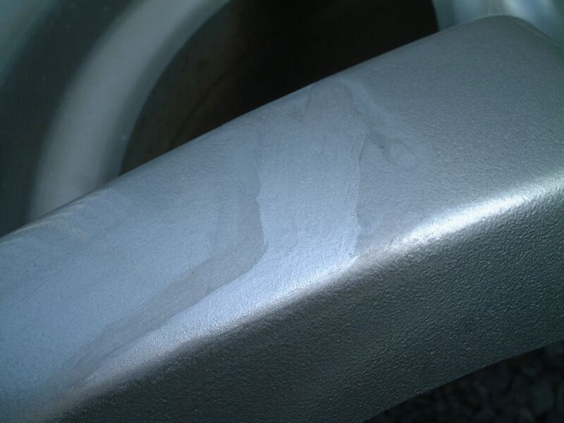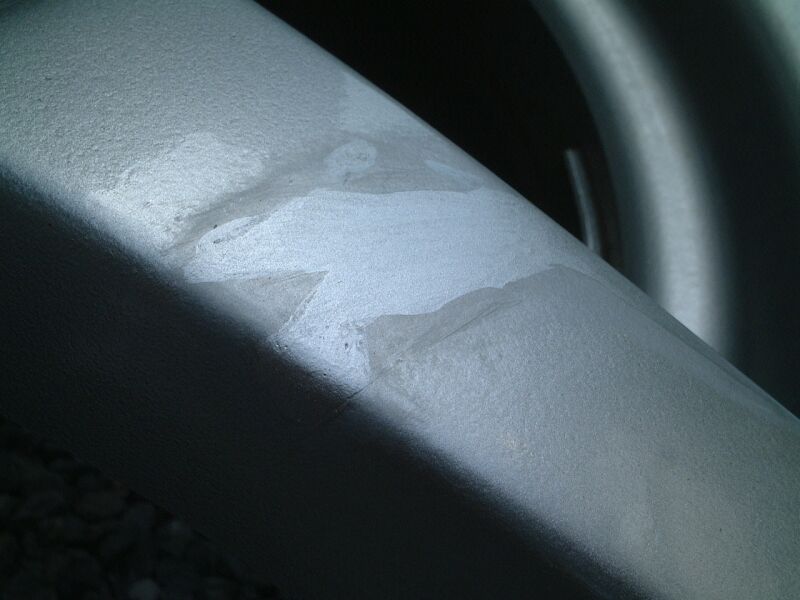 塗料部分がえぐれて、一部アルミが見えている部分もあるし、左側はえぐれているところもあり。 |
